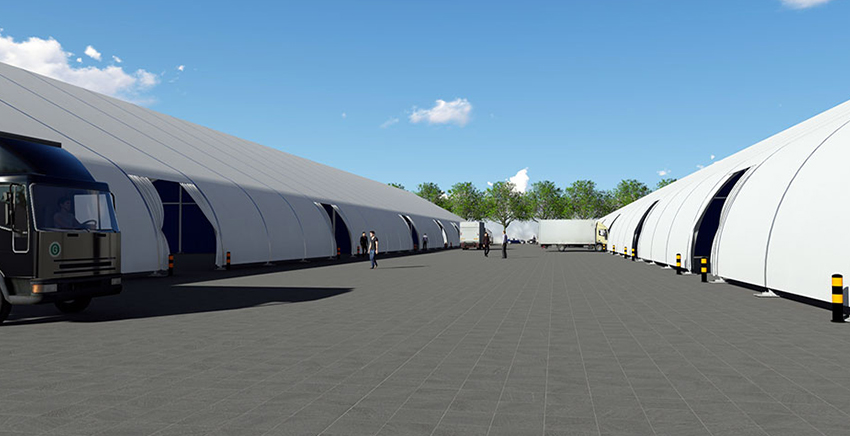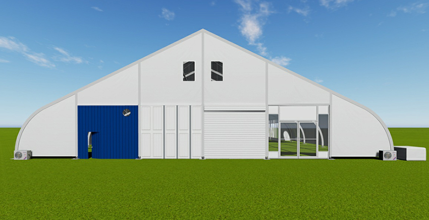桃型篷房的結(jié)構(gòu)采用單元組合式設(shè)計(jì),長度可按5米間距增長或減小。支架材料采用高強(qiáng)度鋁合金(材質(zhì)6061-T6),篷布為阻燃的雙面PVC合成纖維布。