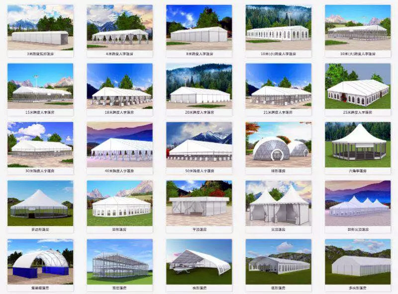 高山篷房全系列備貨豐富,統(tǒng)一標準,部件通用,隨時調配搭建,以上各類使用場景,均可迅速建成環(huán)保建筑。