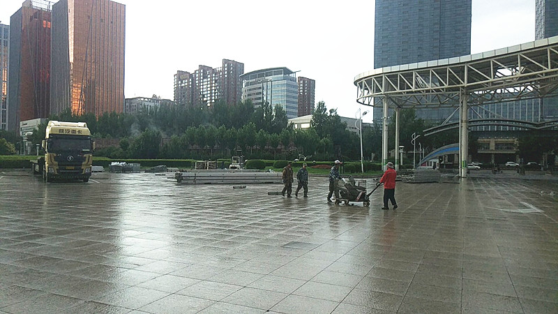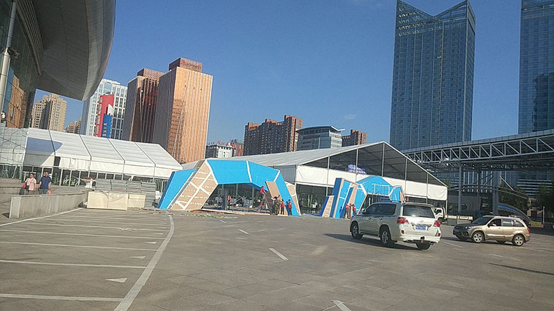 在會展中心的東廣場上,高山的搭建團隊正在開會研討:本次展會所需篷房面積達4000平方米,我們只有四天的時間,在保證工期的前提下,還需保證篷房的質(zhì)量,有沒有信心?有!