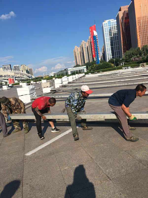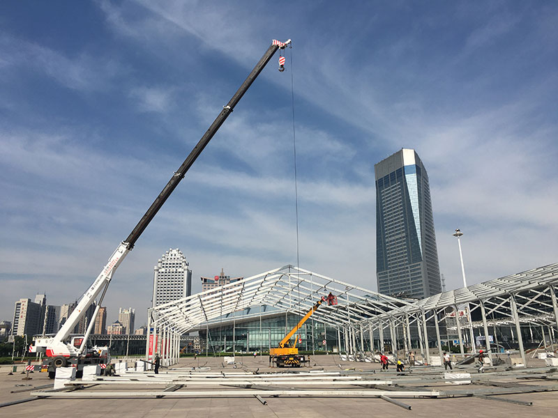 篷房規(guī)模大,同樣,吊車規(guī)格也要大,高山工人告訴小編,在這過程中絲毫不能松懈,不容許有一丁點的失誤。