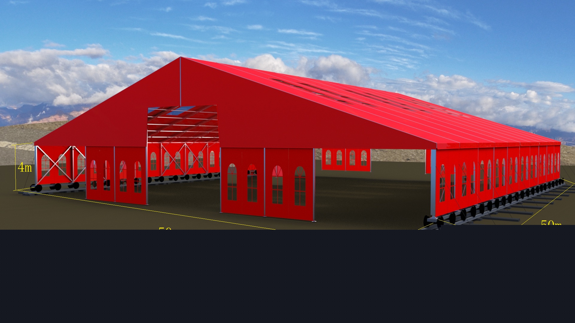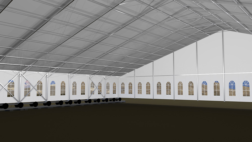 這種篷房建筑,高強(qiáng)度鋁合金結(jié)構(gòu),抗風(fēng)能力,載雪能力很強(qiáng)。根據(jù)國家要求,必須是可移動結(jié)構(gòu),工程師們根據(jù)參數(shù)要求,采用礦輪承載方式,一座篷房建筑鋪設(shè)了兩條鐵軌的方式,實(shí)現(xiàn)了這個(gè)要求,國家環(huán)保部門,國土資源部門同時(shí)通過驗(yàn)收。