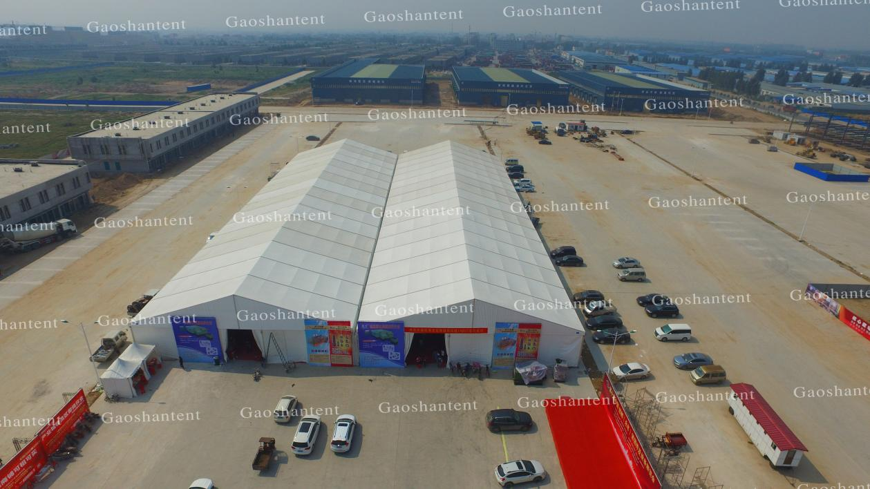 篷布篷與篷頂部做封閉處理,倉(cāng)儲(chǔ)篷由三套篷房組合而成,接口處由專(zhuān)業(yè)技術(shù)人員做了密封處理,防止雨水滲漏。